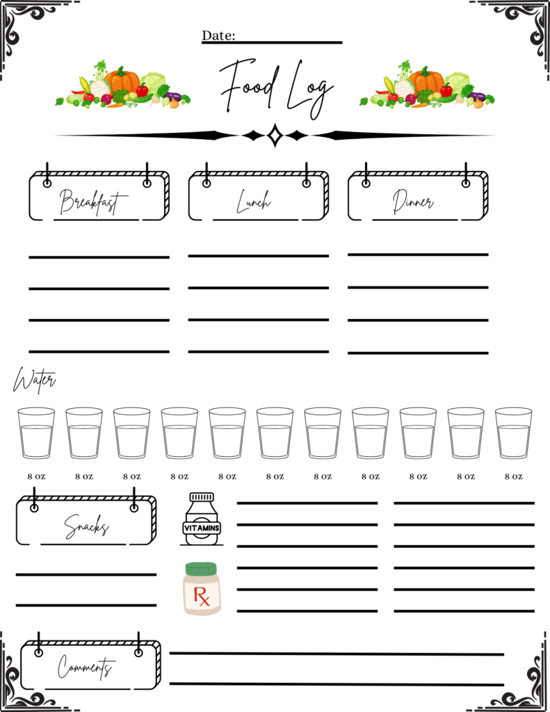 First take a look at what you are eating. It may surprise you that what you are eating is what is holding you back. I have created a food log for you. This includes water intake along with vitamins and medications. In the past, I too thought I was eating right but I was unable to lose weight. I was working out vigorously 3 times a week and moving every day with my medical job. Still, nothing improved on the scale. I took a two week look at my diet. Boy! It was bad. No condemnation with this. This is your first step in the right direction.